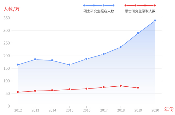 简单来说,硕士研究生报名人数呈井喷式飙升,但是录取人数变化幅度不大,所以,我们考研党竞争压力直线飙升。