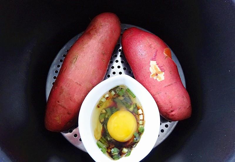 其实用蒸锅蒸鸡蛋6分钟左右就好了,我和地瓜一起用压力锅做的,虽然鸡蛋被蒸得有点老了,好在很香,也省事。