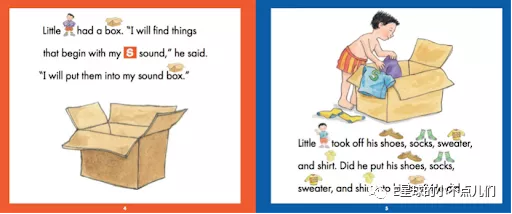 比如在教字母S的时候,老师选读这本1977年就首次出版的经典读物My “S” Sound Box。绘本中生动好玩的故事,把一系列S开头的单词串联在了一起,在师生共读的同时帮助孩子熟悉了字母S的发音以及单词。