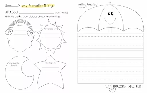 比如这堂主题为“All About Me”的写作课,学生需要写自我介绍。“自己”是一个很宽泛的概念,有太多的东西可以写了。老师给出几个问题来帮助孩子们头脑风暴:“我喜欢做什么?”“我最喜欢的玩具是什么?”“我最喜欢的书是什么?”“我喜欢去哪儿?”